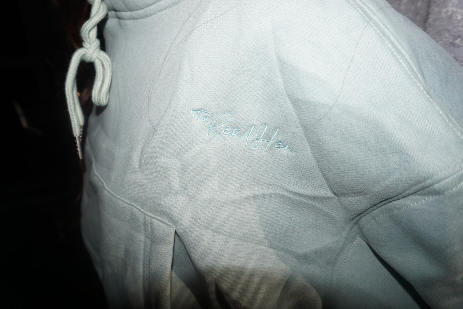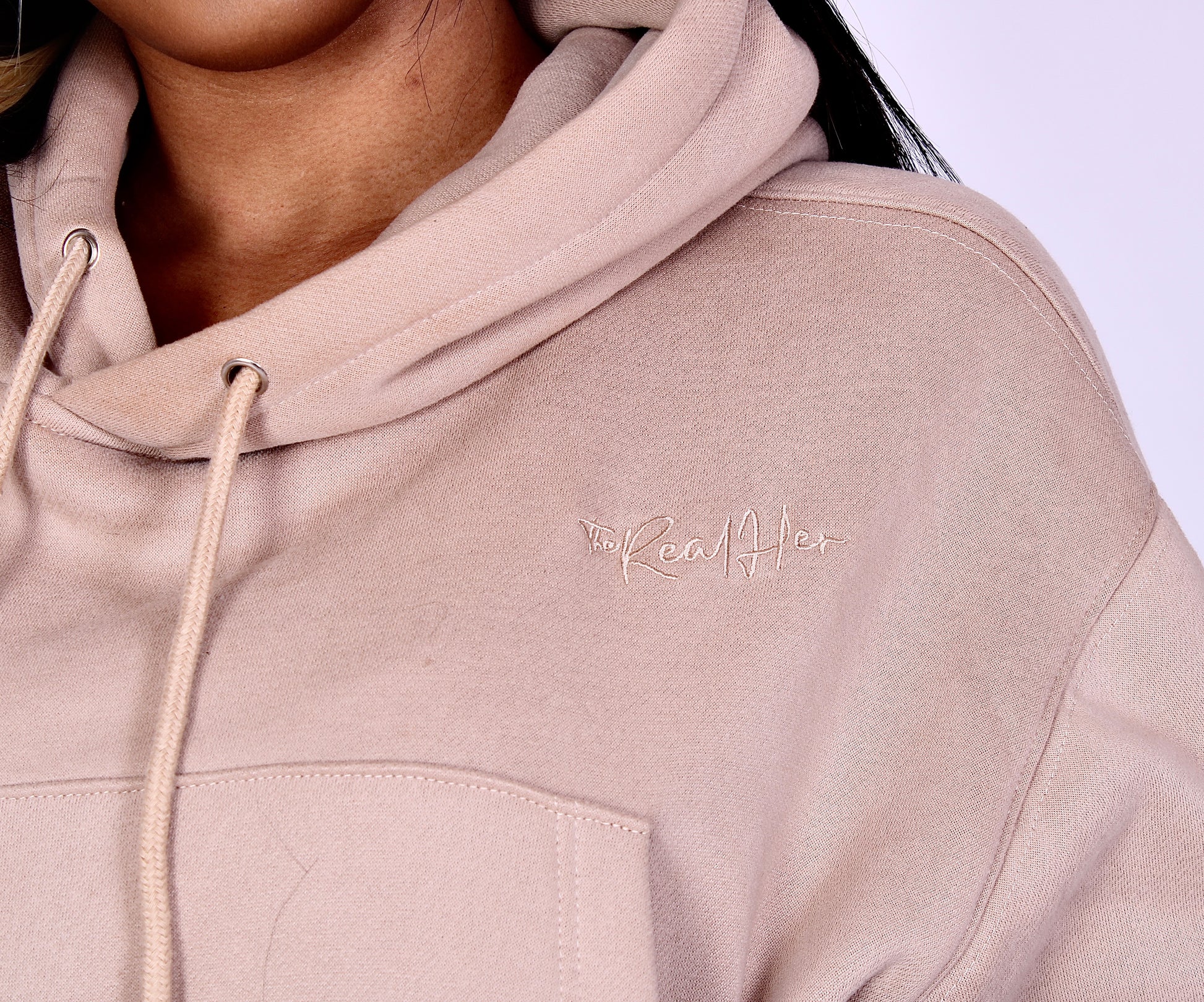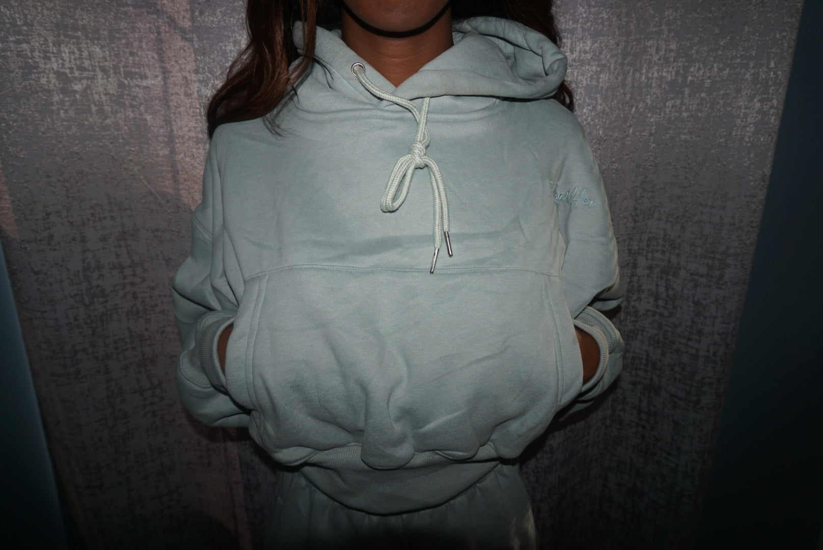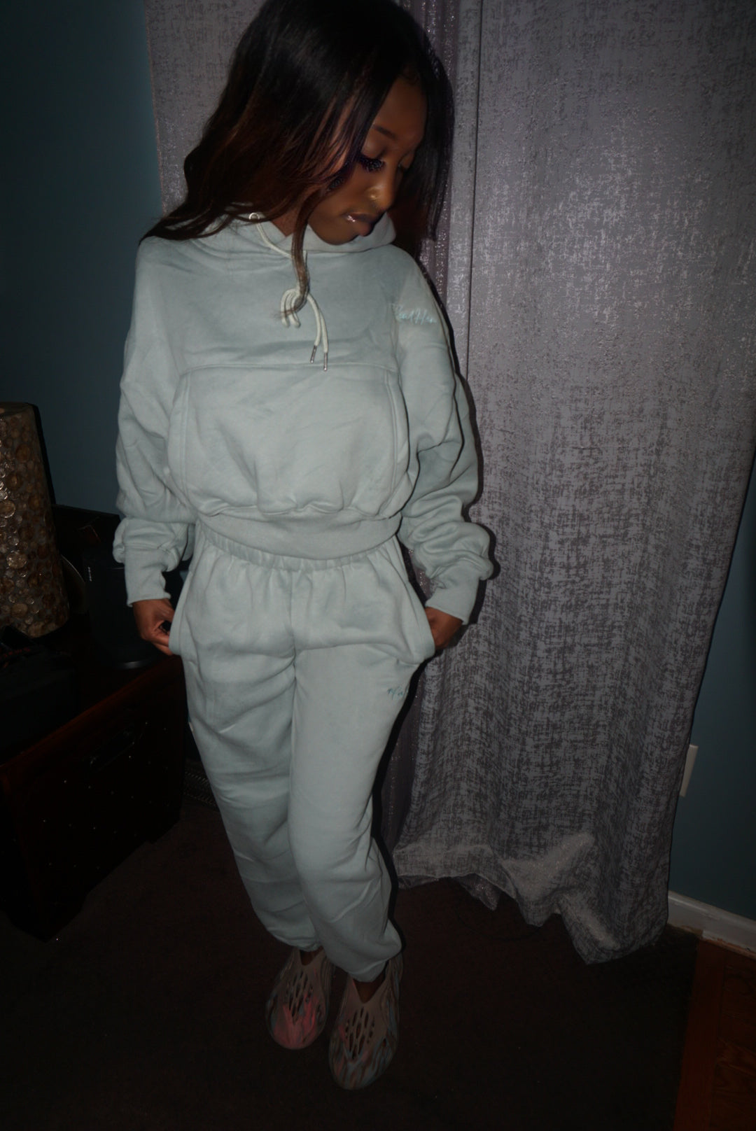 96% cotton. Hoodie and pants sold separately. Runs true to size. Model is wearing size small. Model is 5’5. Model in nude us wearing a size medium.